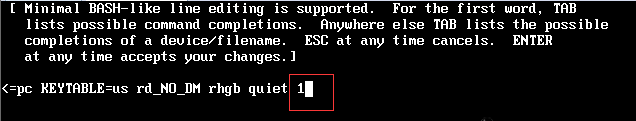 3、进入该编辑模式后,在quiet后面空格输入 1 或者 simple 然后回车