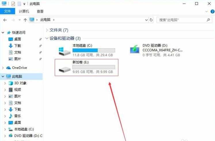 4、完成后,界面会出现一个黑色框10.00G未分配的磁盘
