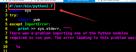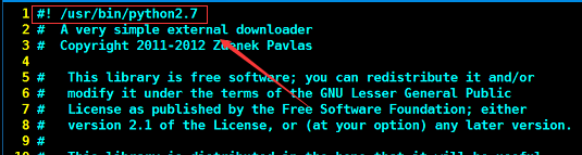 将#!/usr/bin/python修改为#!/usr/bin/python2.7