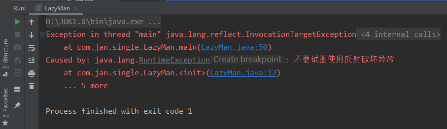 throw new RuntimeException("不要试图使用反射破坏异常");