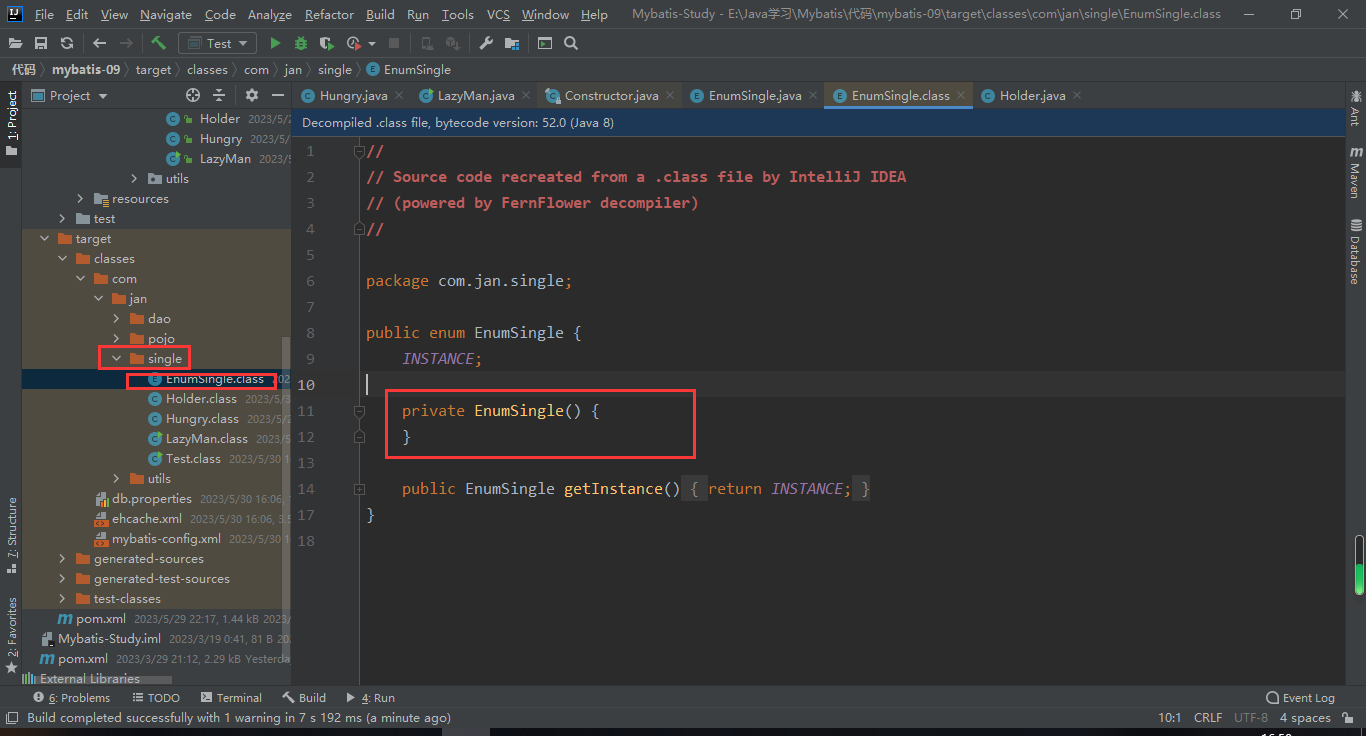 在IDEA的targer中找到 EnumSingle.class,打开文件的文件的位置,再从文件的卫视输入 cmd