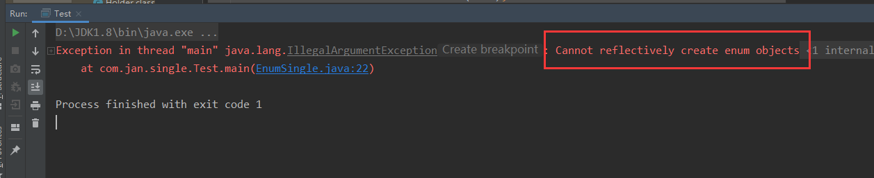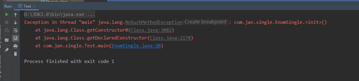 EnumSingle instance2 = declaredConstructor.newInstance();