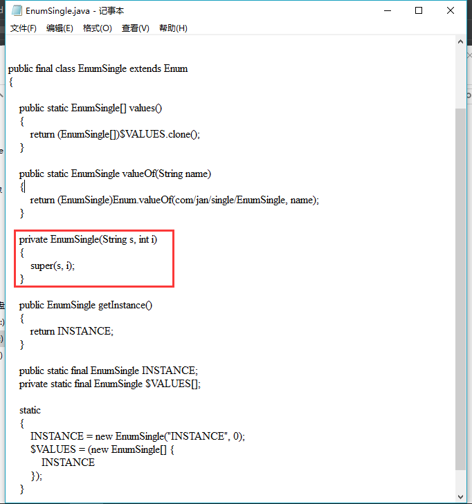 EnumSingle instance1= EnumSingle.INSTANCE; //有一个无参构造,试一试,看看是不是真的