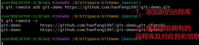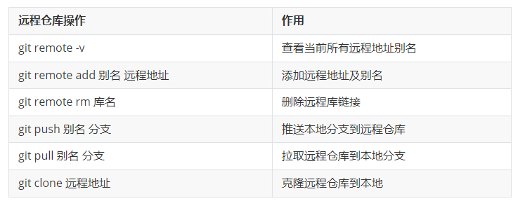 | git remote add 别名 远程地址 | 添加远程地址及别名 |