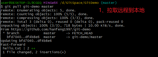 | git pull 别名 分支 | 拉取远程仓库到本地分支 |