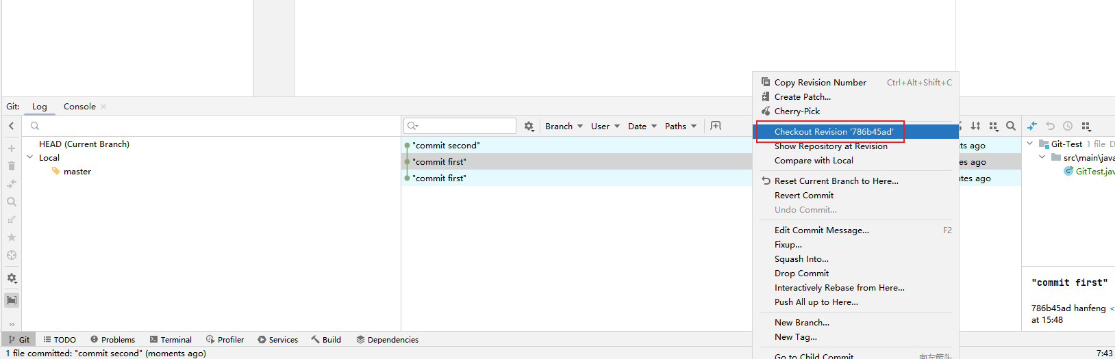 - idea创建和切换git分支,下边两种方式均可,切换分支可以直接在右下角master部位点击其他分支checkout一下