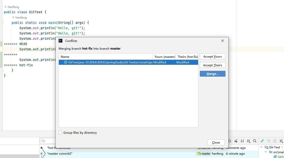 - idea拉取项目,代码需要先pull然后才能push,否则会失败