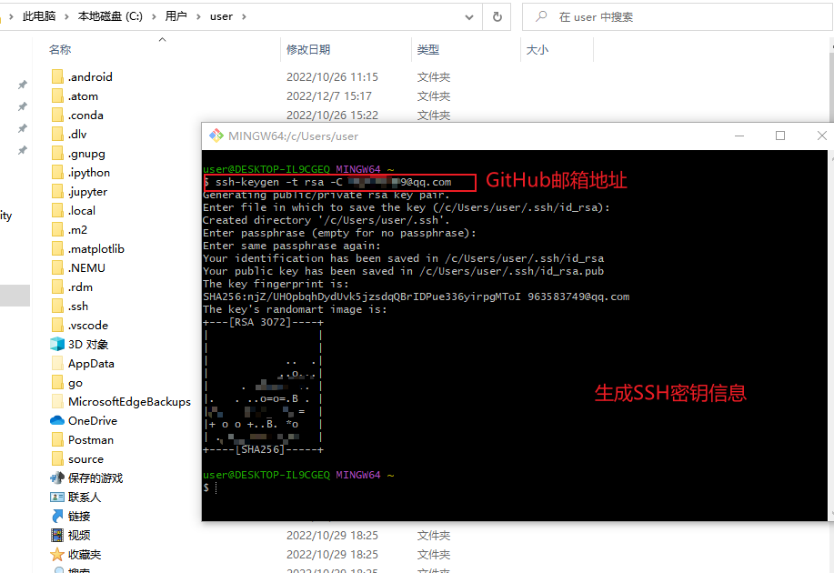 - 用户签名只需要设置一次(不配置后续提交代码会出错),具体配置过程: