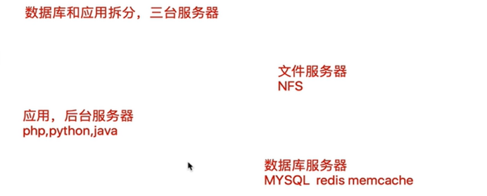 三台服务器:应用服务器(后台代码)、文件服务器(静态数据)、数据库服务器(mysql存储),三台服务器对硬件要求得资源是不同得