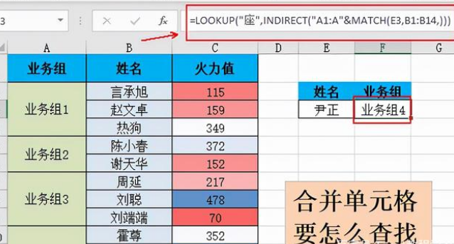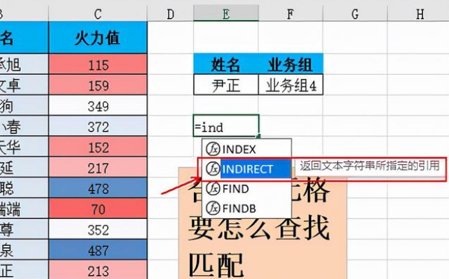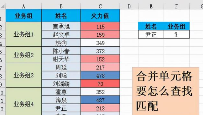 在下图中,通过姓名,来匹配他们所在的业务组。