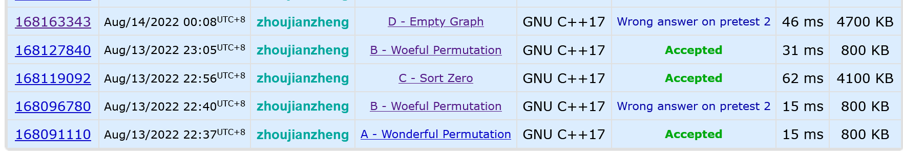 第一题确实写得快,但是第二题的时候当时的第一想法错了,当即就决定跳题了,C题结论得出的也比较快,D题确实比较可惜,思路是对的就是有特殊情况没有考虑到