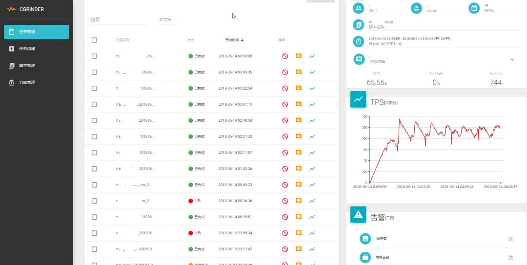 通过平台可以创建/开始/终止压测任务,获取压测的真实链路,并查看本次压测的实时监控数据和统计数据等,当核心链路上出现应用冒烟,支持通过自动/人工方式终止压测任务。