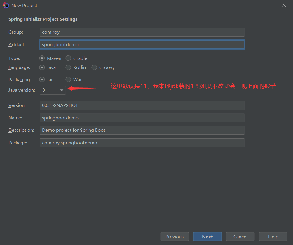- 产生原因:IDEA这里默认是11,我本地jdk装的1.8,如果不改就会出现下面的报错