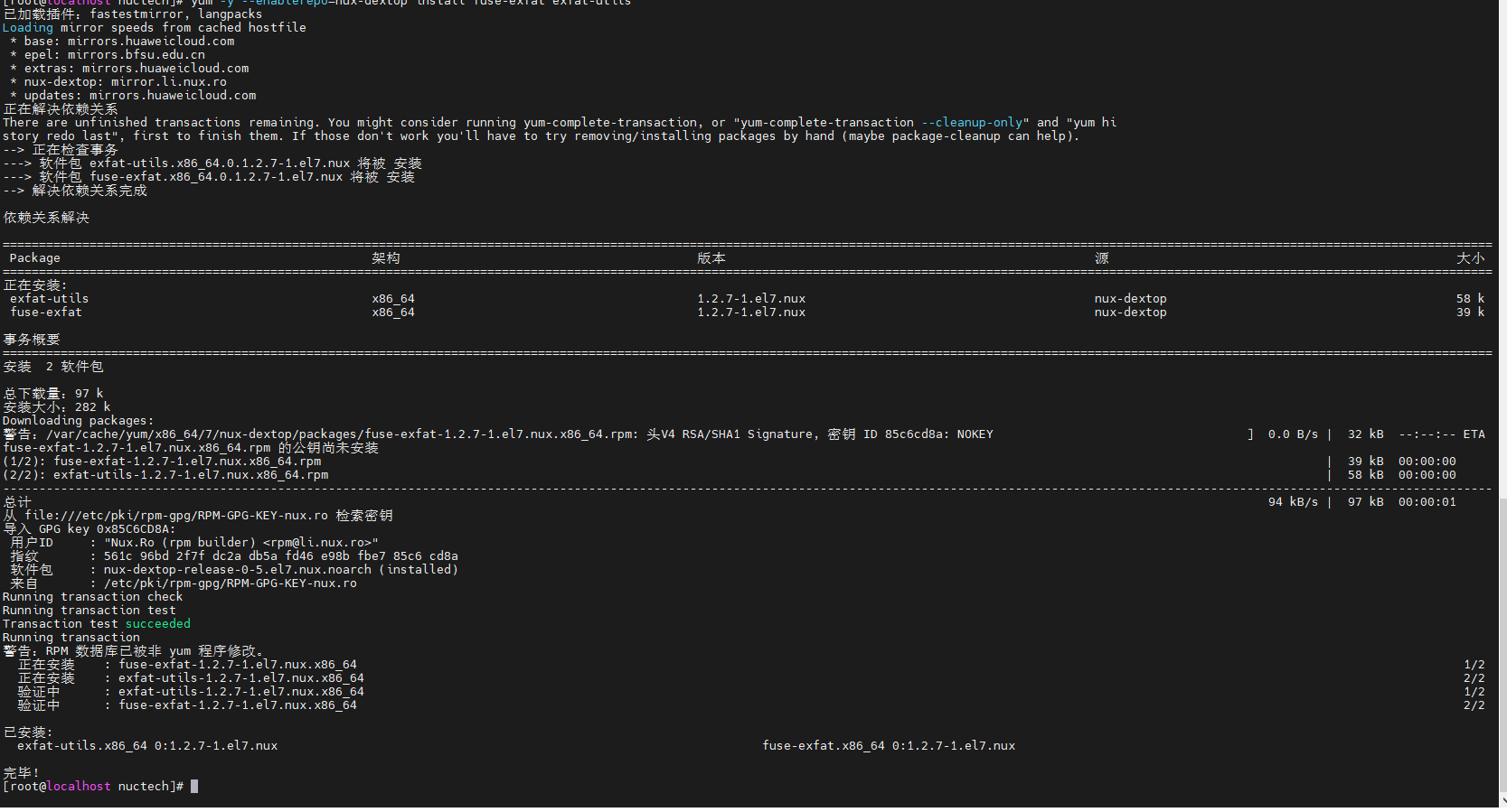 yum -y --enablerepo=nux-dextop install fuse-exfat exfat-utils