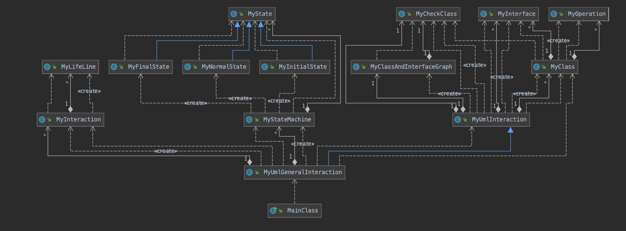 第二次作业在第一次作业的基础上新增了对UML顺序图和状态图的简单解析。本人采用了层次化的架构设计思想,根据starUML文件结构,逐层建立类封装数据。采用这种架构虽然有些类在本次作业中不一定用的到,但是如果有新的需求到来,整个架构是不需要发生大的改变的。另外,关于