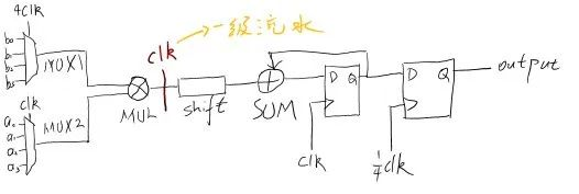 移位累加过程如果在移位和累加过程中间加一层流水线的话延时可能会显著降低,但是考虑到这里的寄存器数量太多,于是放弃。