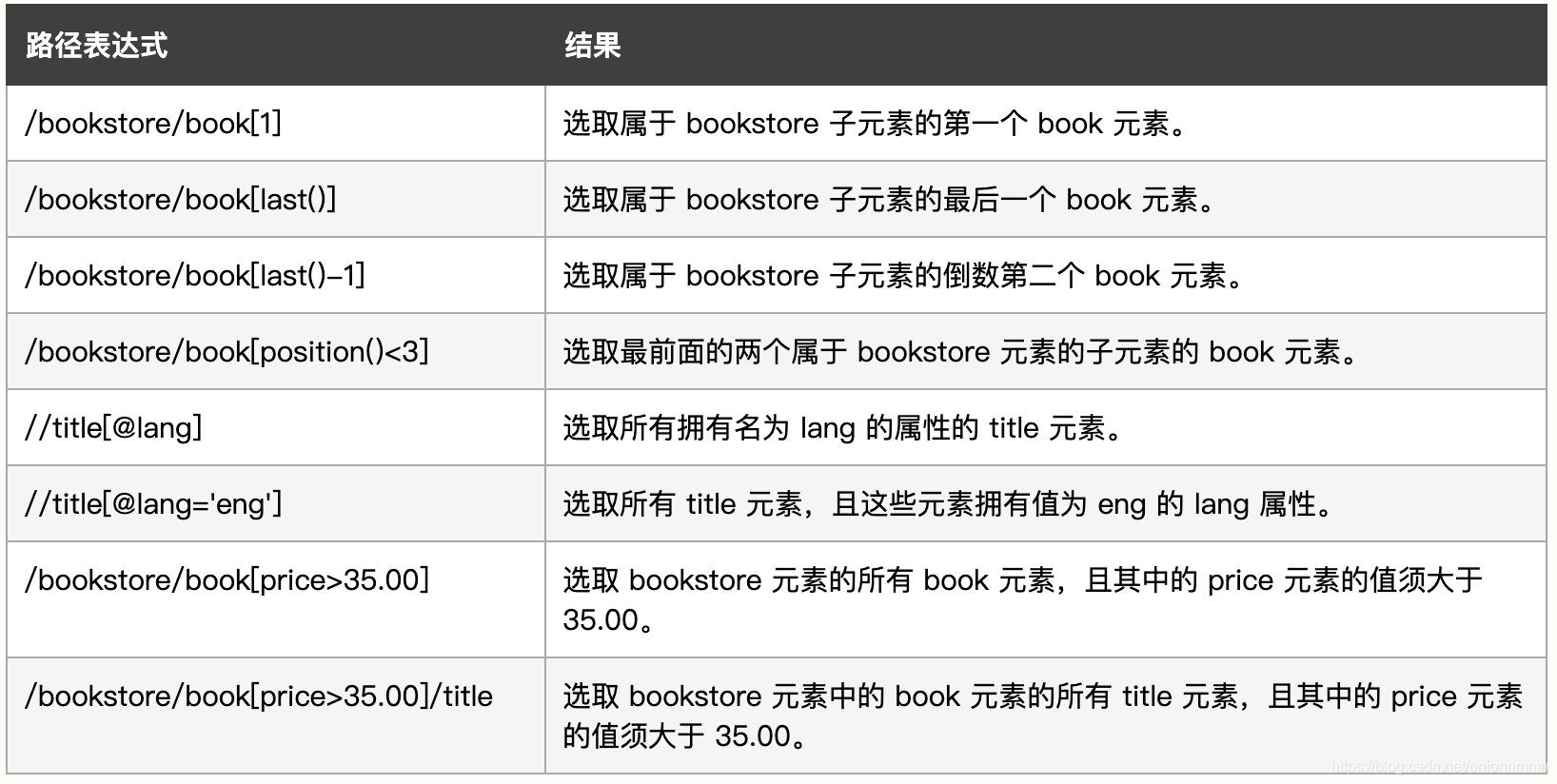 一些路径表达式,以及这些表达式的结果