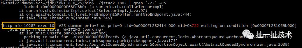 如上图,找到了耗CPU高的线程对应的线程名称“http-nio-10287-exec-10”,以及看到了该线程正在执行代码的堆栈。