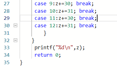 case 3:z+=31; break;