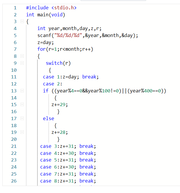 1数据表达:定义整型变量year,month,day,z,r。