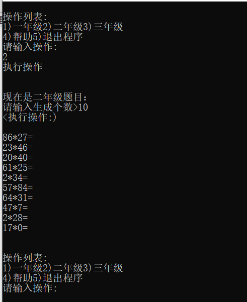 case 2:printf("现在是二年级题目:\n");printf("请输入生成个数>");
