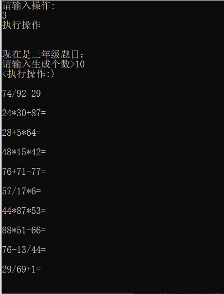 case 3:printf("现在是三年级题目:\n");printf("请输入生成个数>");