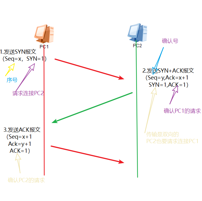 - SYN: 同步序号位,TCP需要建立连接时将该至设为1