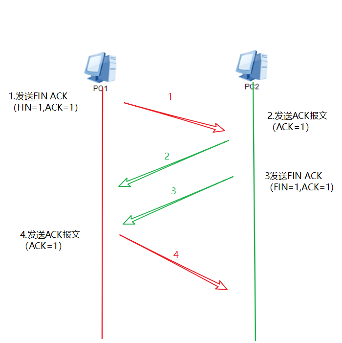 当 PC1向PC2请求关闭,PC2回应ACK确认之后,并没有立即发送FIN发送给PC2。此时PC1处于半连接状态(半开关)
