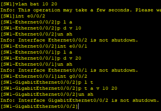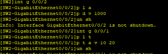 分别配置端口g0/0/2 (access) 端口g0/0/1(trunk)