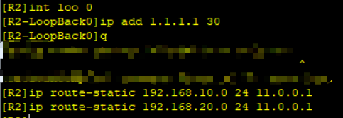 配置路由器R2 向下指静态 因为向下 有两个目的地IP 192.168.10.0 和192.168.20.0 所以要配两段