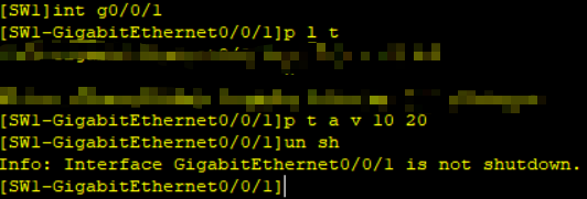 g0/0/1口和另一个交换机连接 Trunk配法