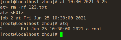 - at [HH:MM] [yyyy-mm-dd] #指定时间设置任务 不加年月日表示当天 Ctrl+D 保存并退出