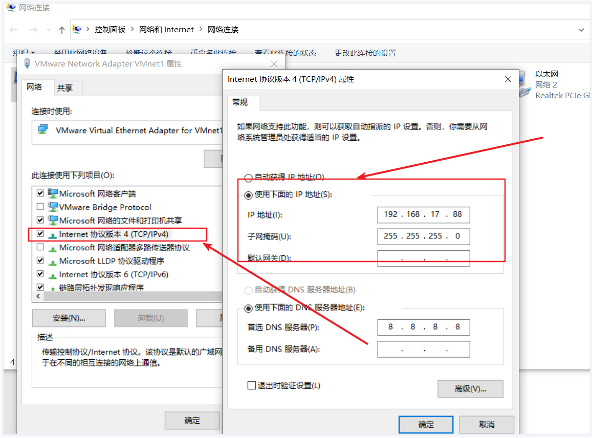 注意寄主机里的ip一定要配置到与DHCP服务器 在同一网段