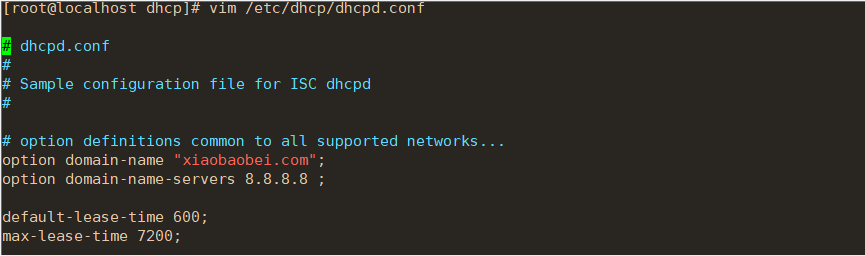 vim /etc/dhcp/dhcpd . conf #设置全局配置参数