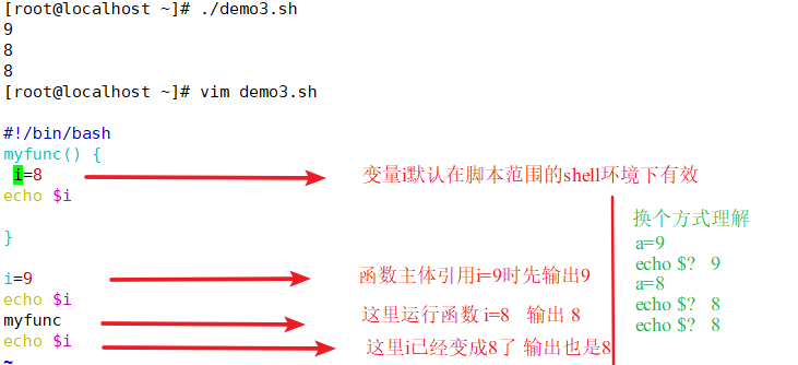 - 函数一结束就取返回值,因为$?变量只返回执行的最后一条命令的退出状态码