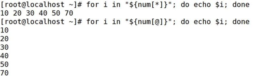 当不使用引号的时候 ${num[*]} 和${num[@]} 是没有什么区别的