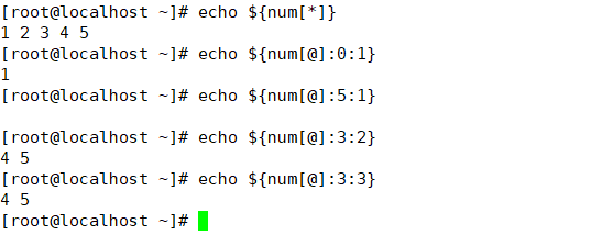 ${num[@]:下标:取几位} 如果取的位数多于数组的位数了 就不显示后面的数值了