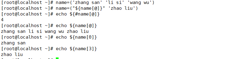 数组名= (value0 value1 value2 ...)