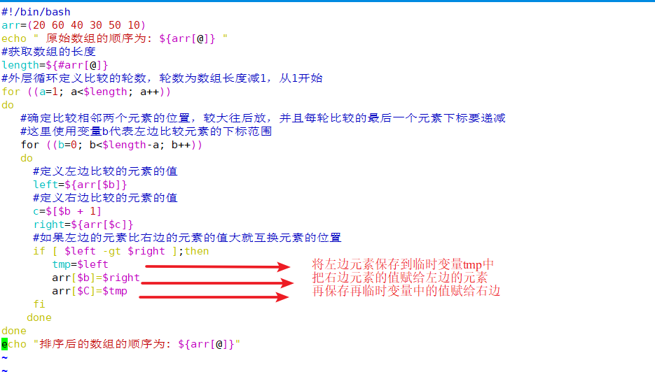 冒泡算法由双层循环实现,其中外部循环用于控制排序轮数,一般为要排序的数组长度减1次,因为最后一次循环只剩下一个数组元素,不需要对比,同时数组已经完成排序了。而内部循环主要用于对比数组中每个相邻元素的大小,以确定是否交换位置,对比和交换次数随排序轮数而减少。