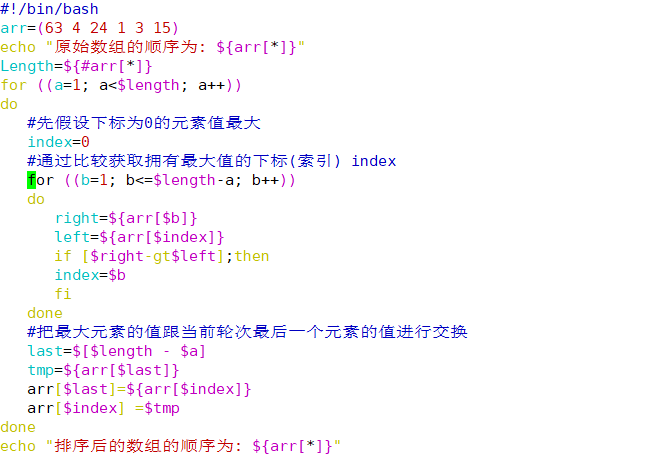 将指定排序位置与其它数组元素分别对比,如果满足条件就交换元素值,注意这里区别冒泡排序,不是交换相邻元素,而是把满