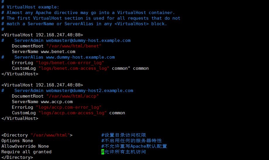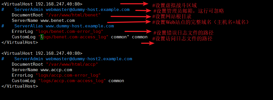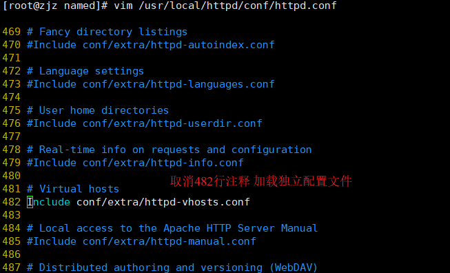 vim /usr/local/httpd/conf/extra/httpd-vhosts.conf #源码编译安装的虚拟主机配置文件路径