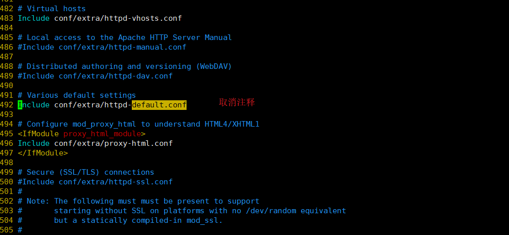 vim /usr/local/httpd/conf/extra/httpd-default.conf