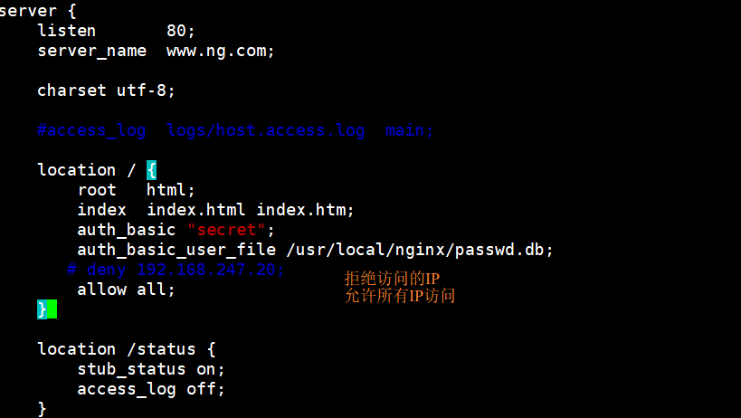 deny IP/IP段:拒绝某个IP或IP段的客户端访问。