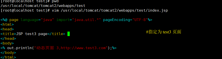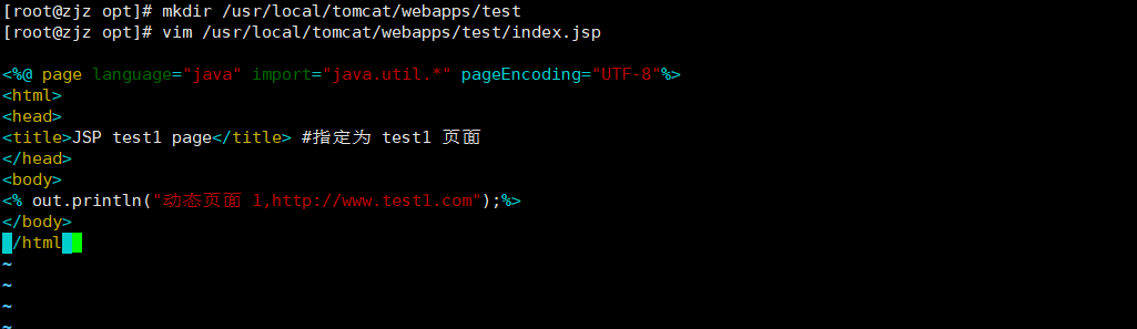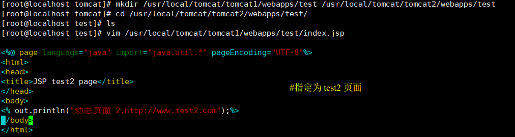 创建Tomcat实例1和Tomcat实例2的网页测试目录test和测试网页文件