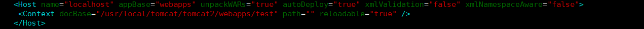 Tomcat2主配置删除前面的 HOST 配置,添加新的HOST配置