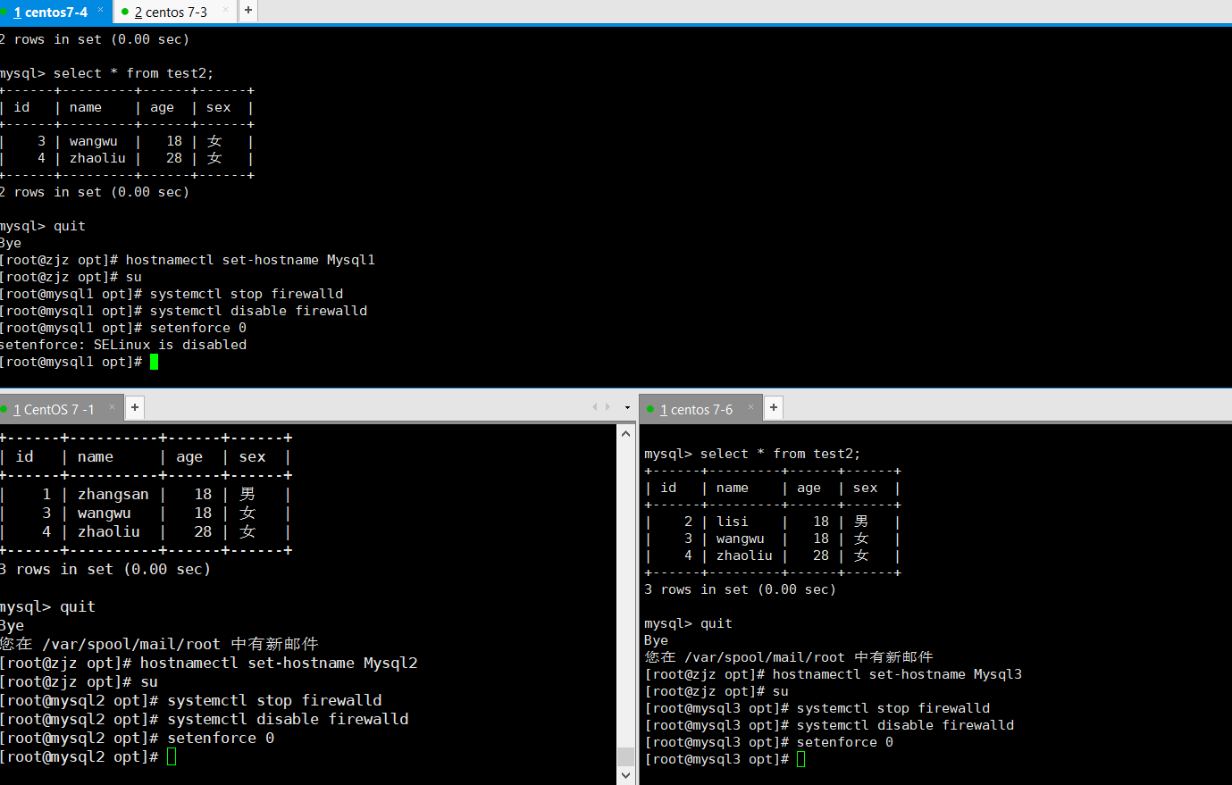 hostnamectl set-hostname Mysql3
