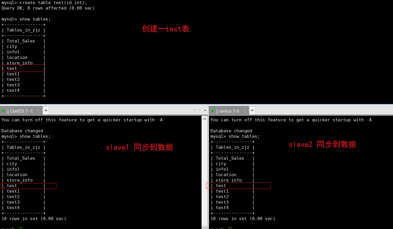 (4)在 Slave1、Slave2 节点查看数据同步结果