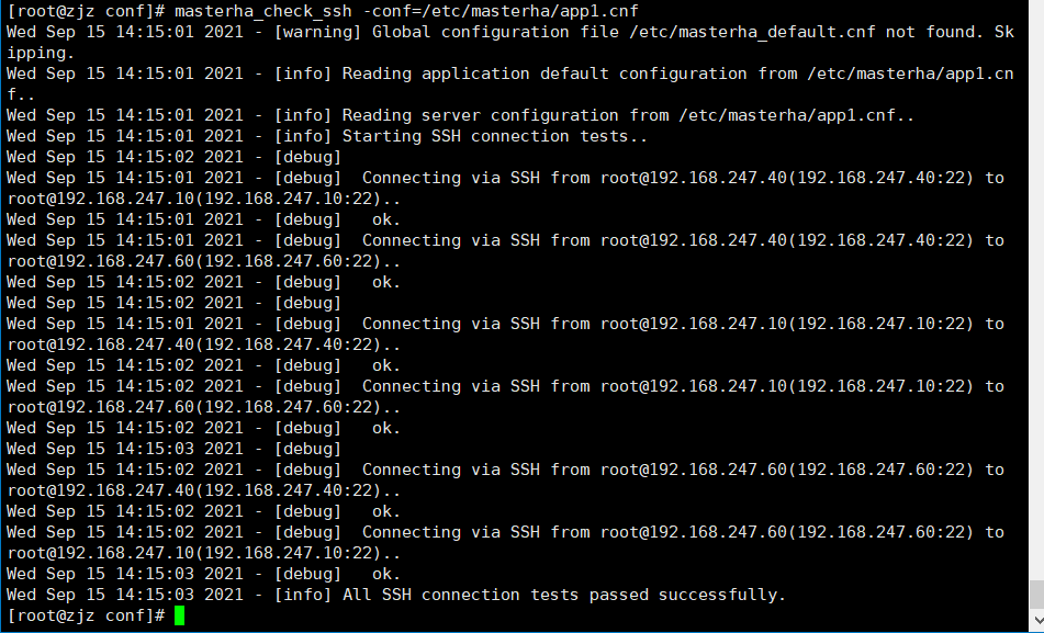 masterha_check_ssh -conf=/etc/masterha/app1.cnf