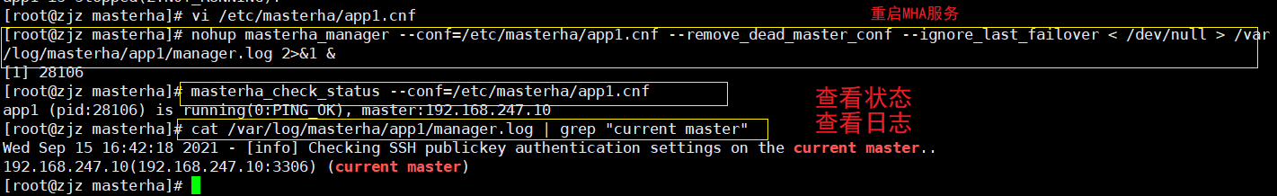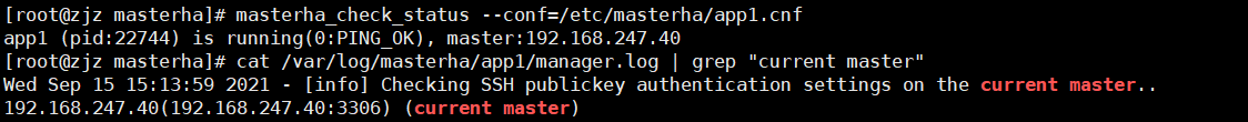 cat /var/log/masterha/app1/manager.log | grep "current master"