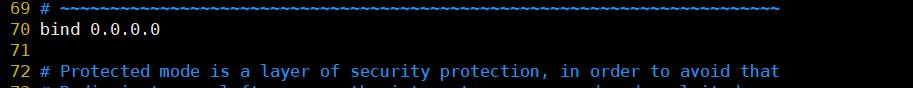 bind 0.0.0.0 #70行,修改监听地址为0.0.0.0